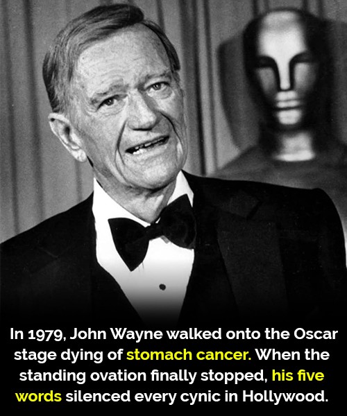 When the 51st Academy Awards opened on April 9, 1979, few moments were as anticipated as the appearance of John Wayne. For more than five decades, Wayne had defined an entire era of American cinema — a symbol of rugged heroism, classic Western storytelling, and unmistakable screen presence. But on that night, his return to the public eye held a deeper significance. He had endured a series of major health challenges in the years before the ceremony, and his arrival onstage became one of the most emotional Oscar moments of the decade.
