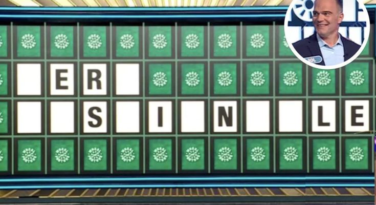 With his wife and daughter cheering from the sidelines, Ferroni entered the Bonus Round and selected the “Phrase” category. After being given the standard letters R, S, T, L, N, and E, he chose C, M, G, and I. Only one letter appeared on the board, leaving the puzzle as “ER _ S_I_N _LE.”