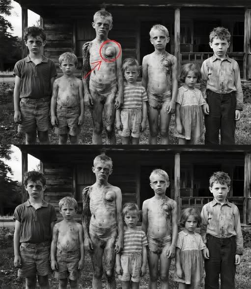According to sheriff’s logs dated February of that year, seven children were found standing inside a barn on the Harlow estate, arranged in a precise formation and refusing to respond to questions. Their adoptive parents, Edgar and Margaret Harlow, were later discovered deceased inside the family home.