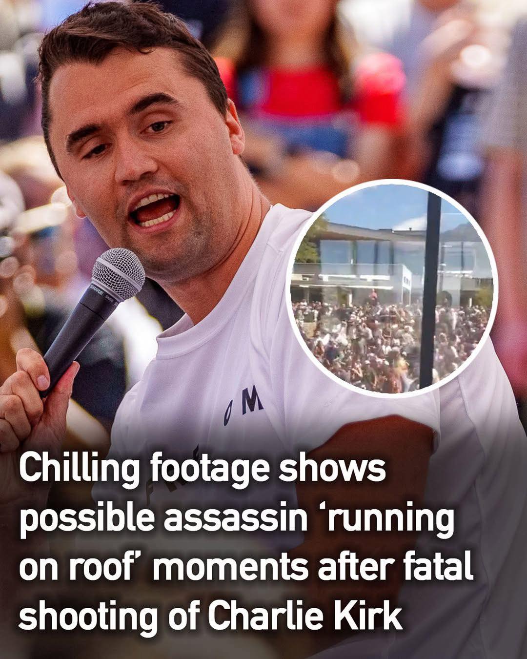Chilling video shows figure running on rooftop after Charlie Kirk shooting