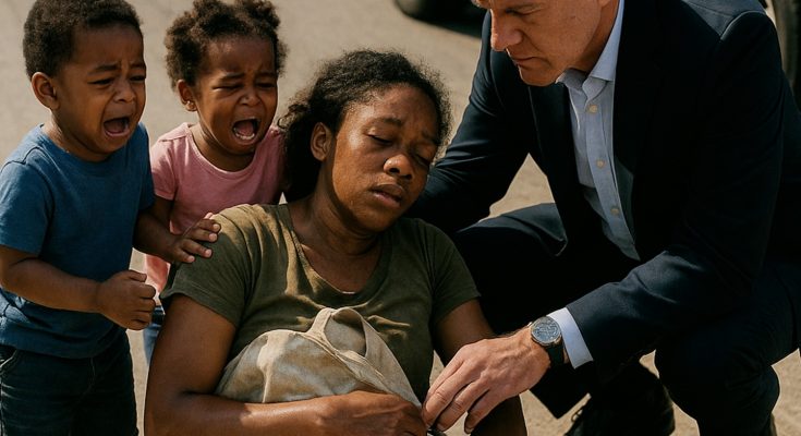 Her legs buckled. With a faint gasp, Maya collapsed on the rough concrete. Her vision blurred, her breath shallow. Eli tugged at her arm, his small voice breaking into wails, while Grace’s high-pitched cries pierced the air. People passed by—some slowing, some staring—but most moved on, unwilling to see, unwilling to stop. To them, she was invisible.