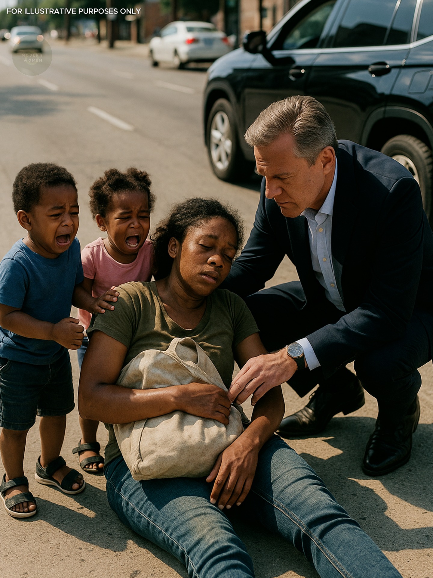 And then, a sleek black SUV slowed to the curb. The tinted window slid down, revealing a man in his early fifties—Jonathan Pierce, billionaire entrepreneur, a name often splashed across business magazines and financial networks. He had been on his way to a meeting, but the sight of two desperate children clutching at their unconscious mother made his chest tighten.