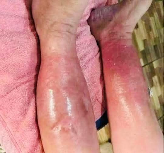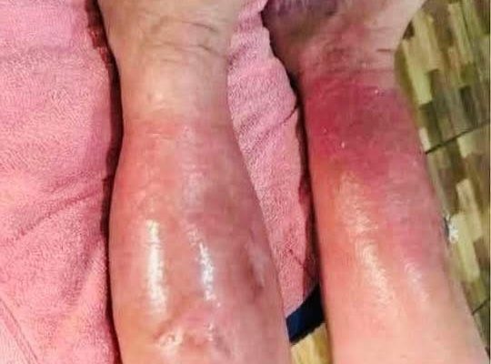 - Red, raw skin