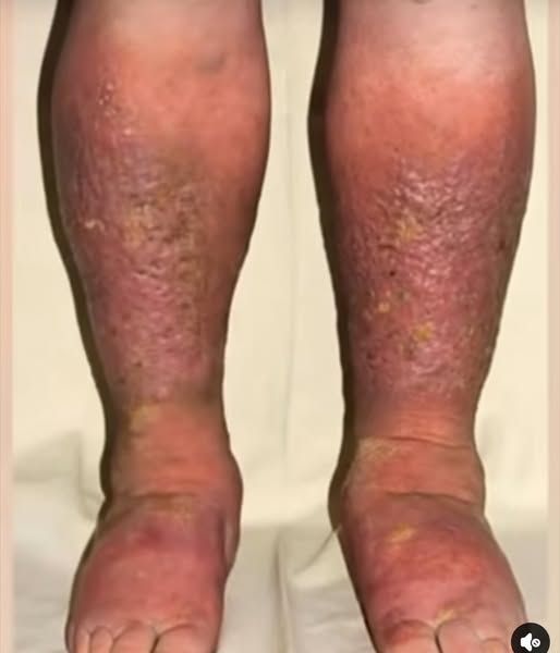- Red, raw skin